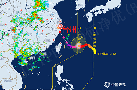 今年第6號臺風“煙花”現已距離浙江省溫嶺市東南方向約720公里,以每小時10公里左右的速度向西偏南方向移動,...
